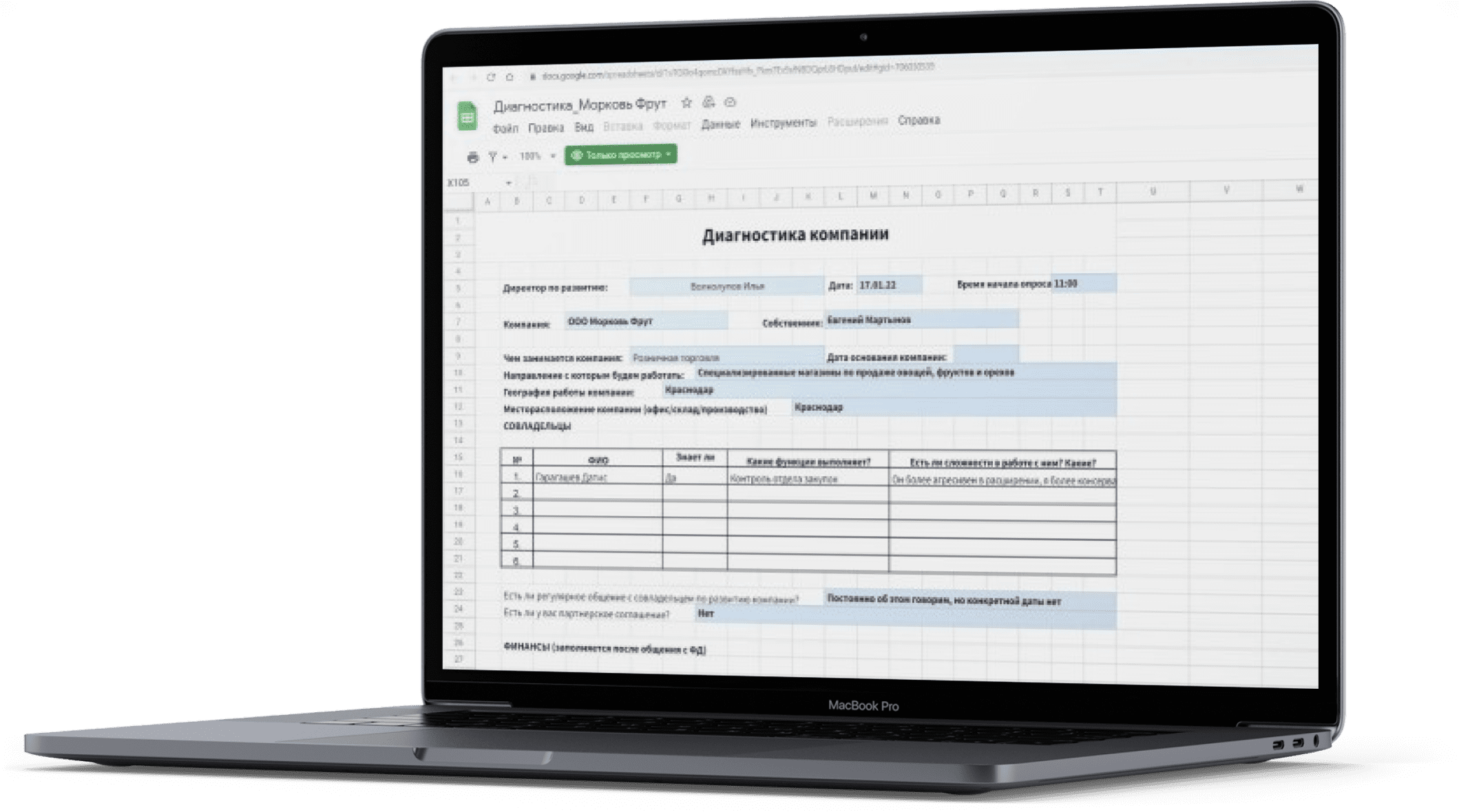 А еще разрабатываем дорожную карту, проводим диагностику системы бизнеса и не только
